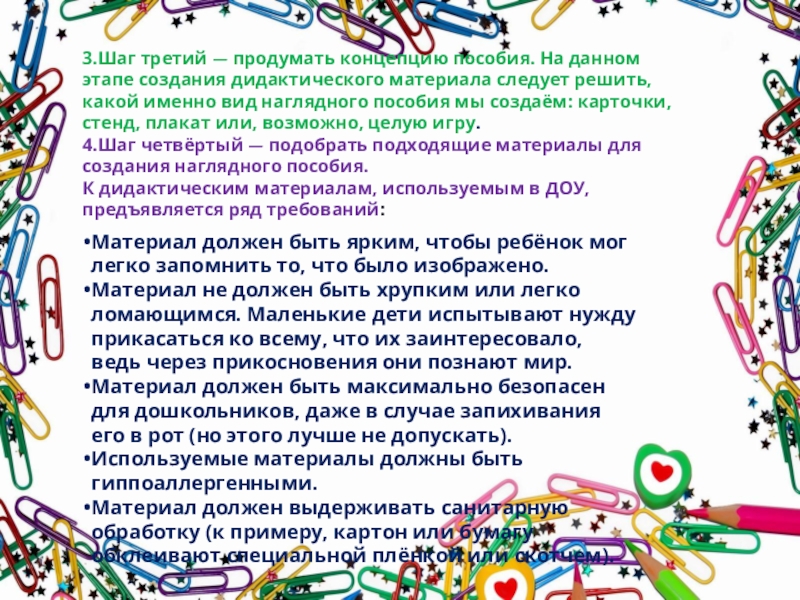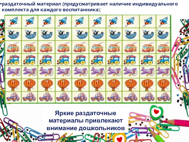 Материал должен быть ярким, чтобы ребёнок мог легко запомнить то, что было изображено.
