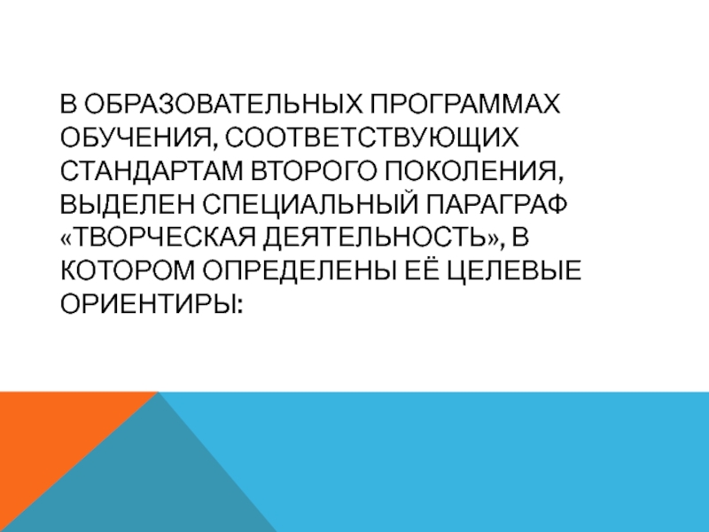 «Творческая деятельность», в котором определены её целевые ориентиры: