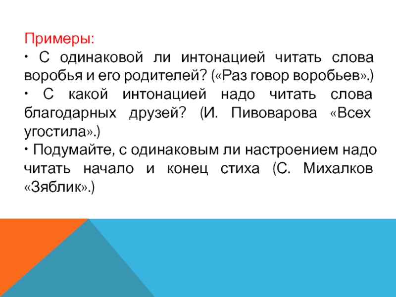 • С одинаковой ли интонацией читать слова воробья и его родителей?