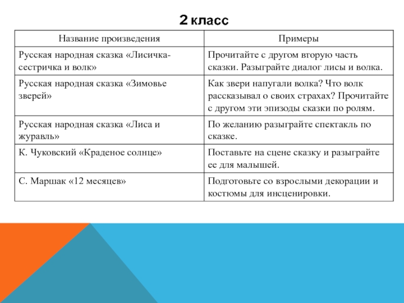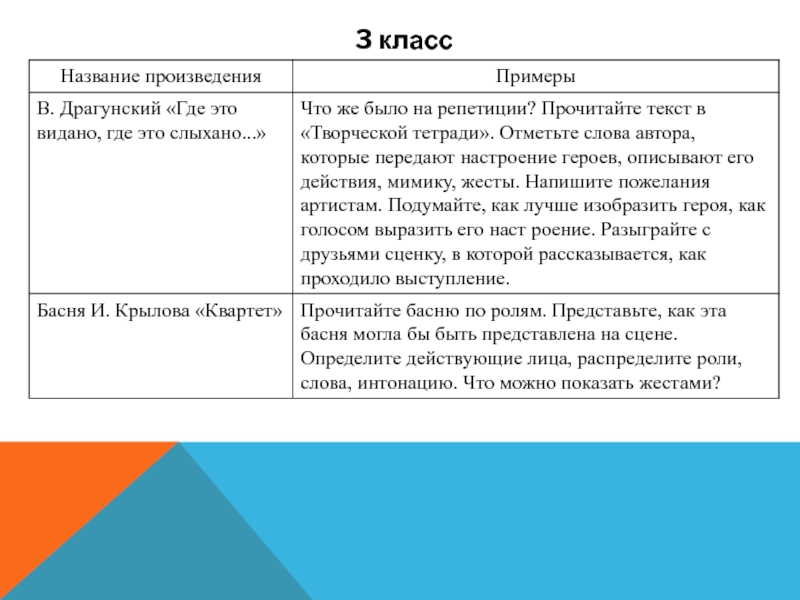 В III–IV классах ученики последовательно, в соответствии с конкретными рекомендациями готовят драматизации сказок, эпизодов из рассказов по готовым и самостоятельно разработанным сценариям.