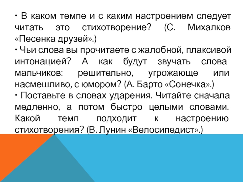 Слайд 17• В каком темпе и с каким настроением следует читать это