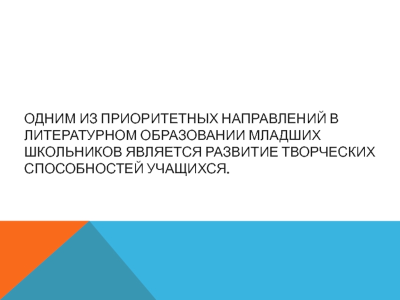 Слайд 2Одним из приоритетных направлений в литературном образовании младших школьников является развитие