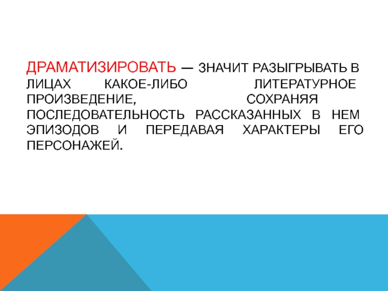 Слайд 10Драматизировать — значит разыгрывать в лицах какое-либо литературное произведение, сохраняя последовательность