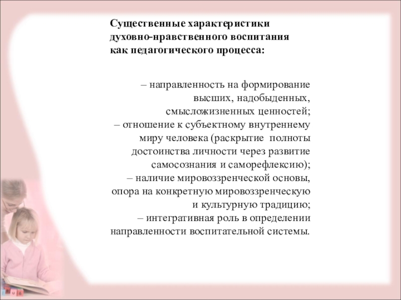Духовно-нравственное воспитание – педагогически организованный процесс усвоения и принятия обучающихся базовых национальных ценностей, освоение системы общечеловеческих ценностей и культурных, духовных и нравственных ценностей многонационального народа Российской Федерации.
