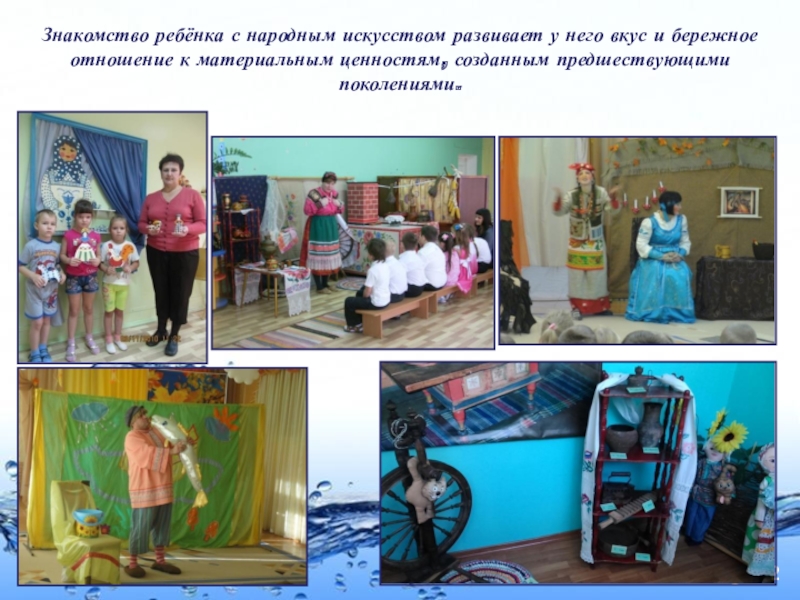 Слайд 12Знакомство ребёнка с народным искусством развивает у него вкус и бережное