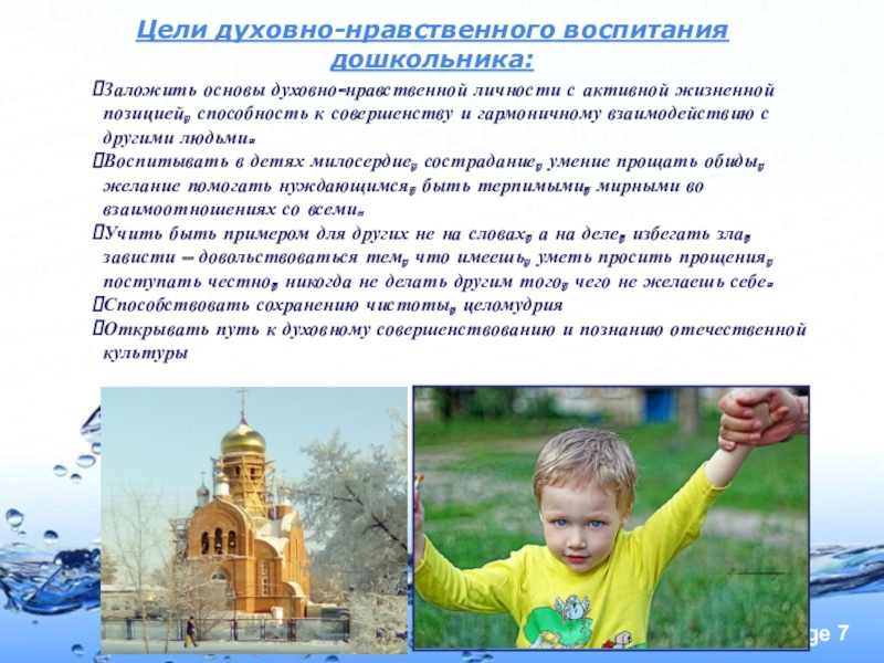 Слайд 7Цели духовно-нравственного воспитания дошкольника: