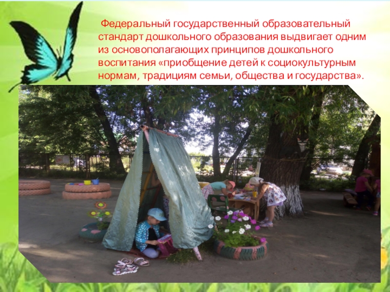 дошкольного воспитания «приобщение детей к социокультурным нормам, традициям семьи, общества и государства».