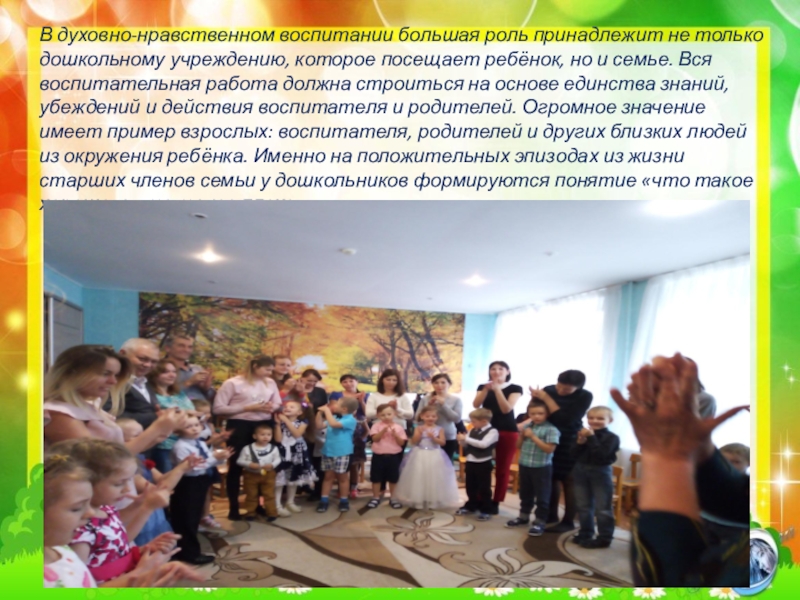 Слайд 11В духовно-нравственном воспитании большая роль принадлежит не только дошкольному учреждению, которое