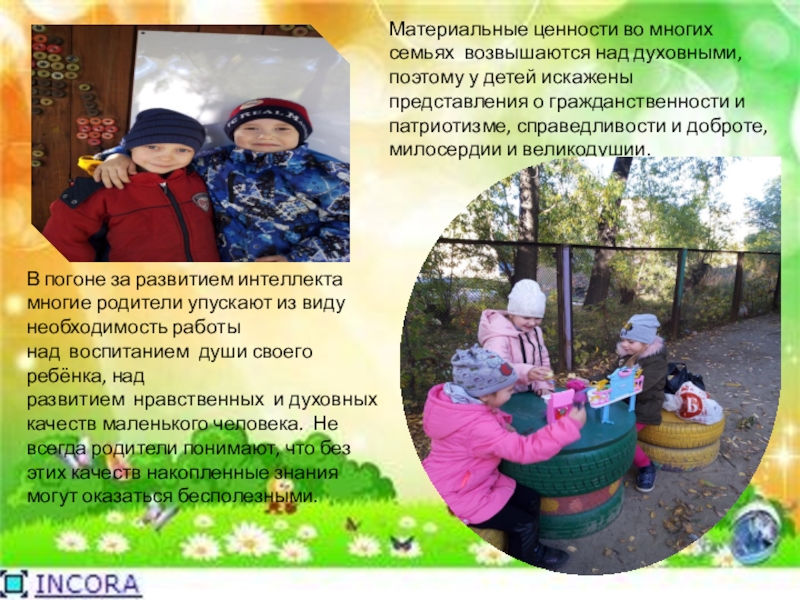 Слайд 13Материальные ценности во многих семьях возвышаются над духовными, поэтому у детей