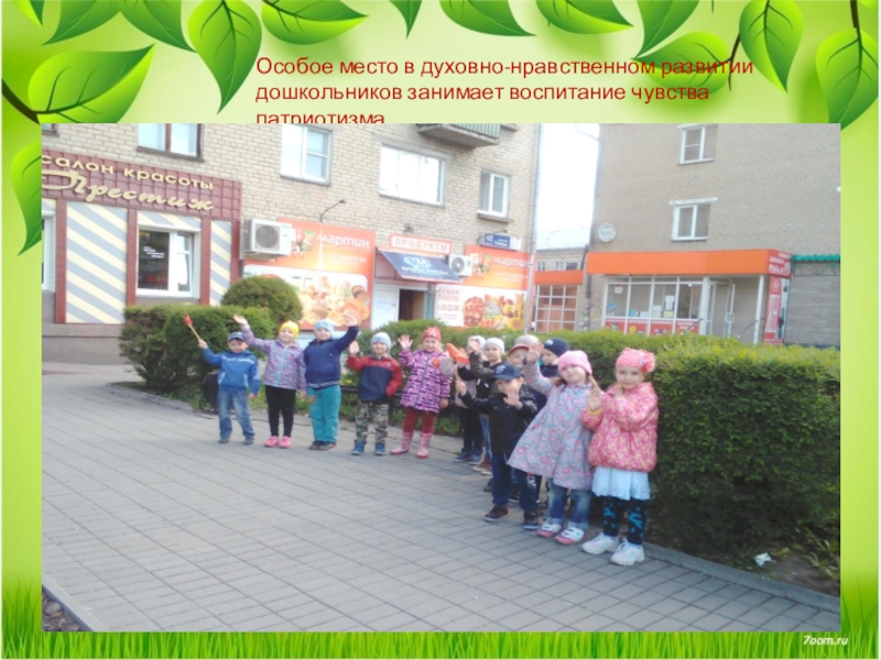 Слайд 10Особое место в духовно-нравственном развитии дошкольников занимает воспитание чувства патриотизма.