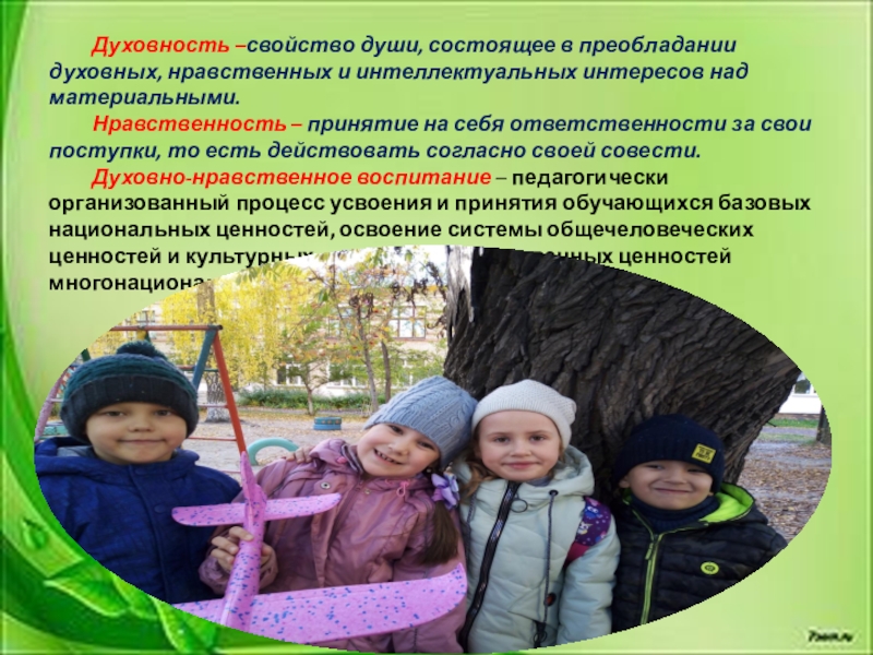 Духовно-нравственное воспитание – педагогически организованный процесс усвоения и принятия обучающихся базовых национальных ценностей, освоение системы общечеловеческих ценностей и культурных, духовных и нравственных ценностей многонационального народа Российской Федерации.