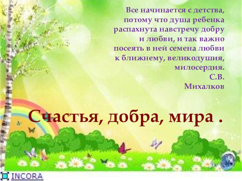 Слайд 18Все начинается с детства, потому что душа ребенка распахнута навстречу добру