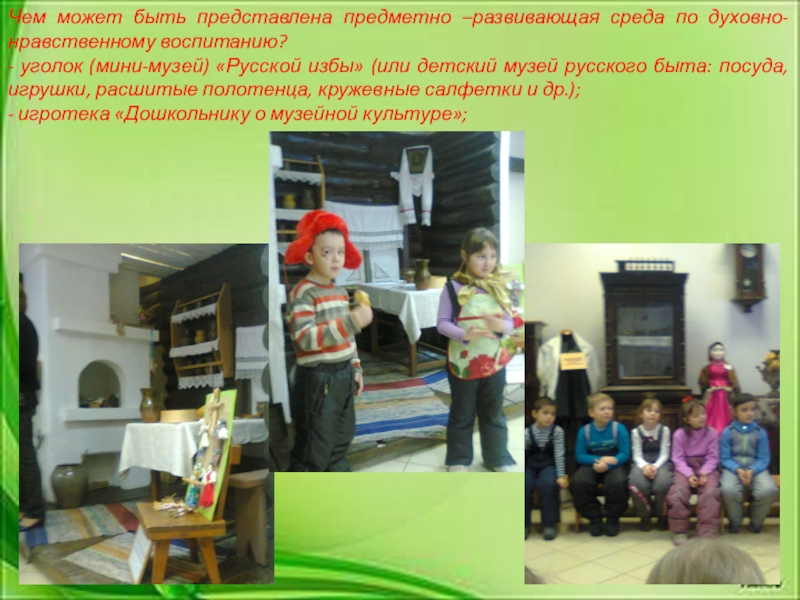 Слайд 15Чем может быть представлена предметно –развивающая среда по духовно-нравственному воспитанию?