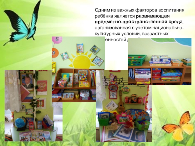 Слайд 14Одним из важных факторов воспитания ребёнка является развивающая предметно-пространственная среда, организованная с