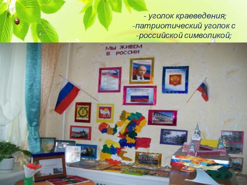 (мини-музей) «Русской избы» (или детский музей русского быта: посуда, игрушки, расшитые полотенца, кружевные салфетки и др.);