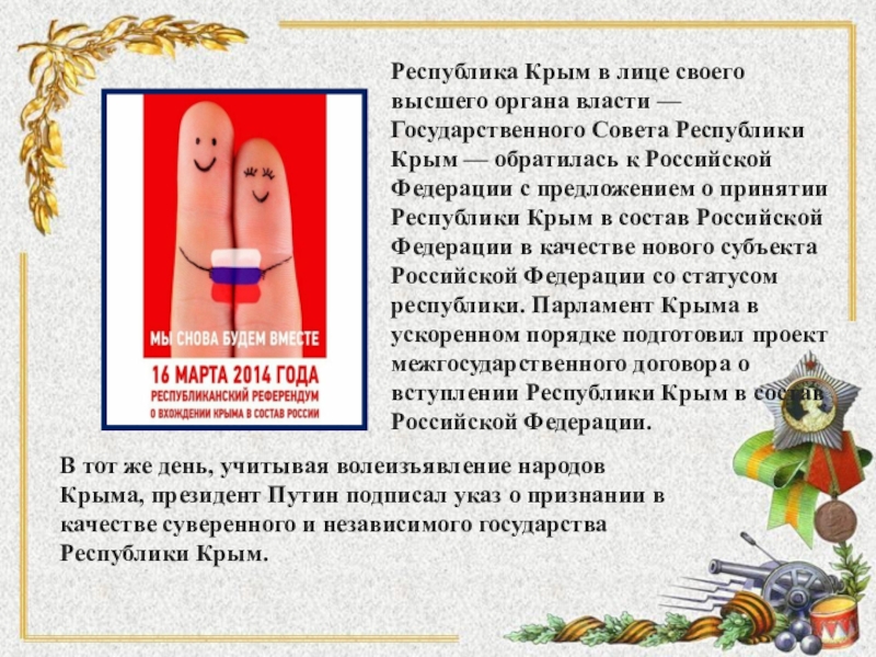 Слайд 5Республика Крым в лице своего высшего органа власти — Государственного Совета
