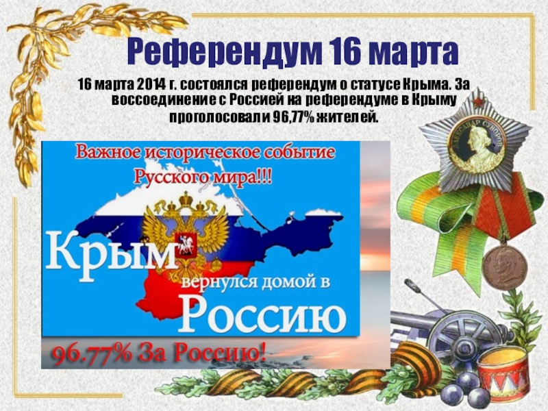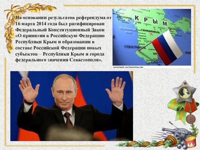 Слайд 4На основании результатов референдума от 16 марта 2014 года был ратифицирован