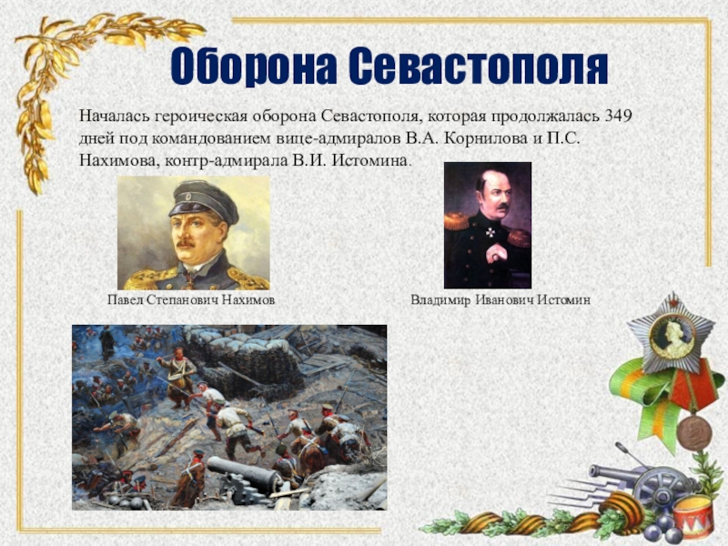 вице-адмиралов В.А. Корнилова и П.С. Нахимова, контр-адмирала В.И. Истомина.