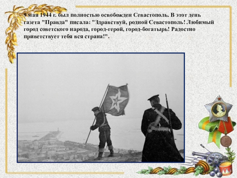 Слайд 149 мая 1944 г. был полностью освобожден Севастополь. В этот день