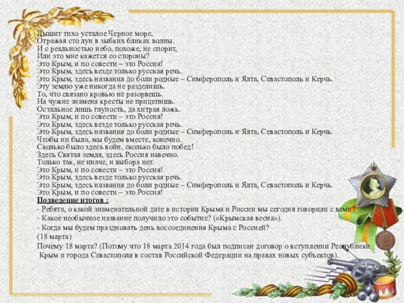 - Ребята, о какой знаменательной дате в истории Крыма и России мы сегодня говорили с вами?