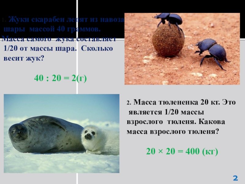 является 1/20 массы взрослого тюленя. Какова масса взрослого тюленя?