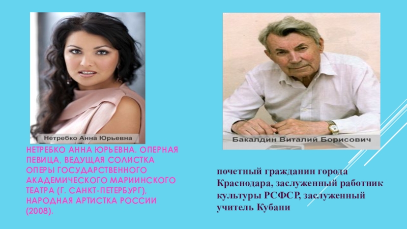 Слайд 18НЕТРЕБКО АННА ЮРЬЕВНА. ОПЕРНАЯ ПЕВИЦА, ВЕДУЩАЯ СОЛИСТКА ОПЕРЫ ГОСУДАРСТВЕННОГО АКАДЕМИЧЕСКОГО МАРИИНСКОГО