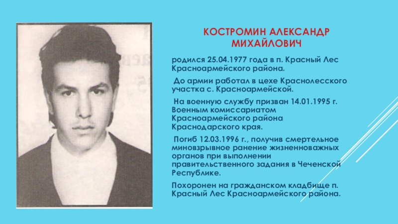 Костромина А.М., погибшего при выполнении воинского долга на территории Чеченской республики