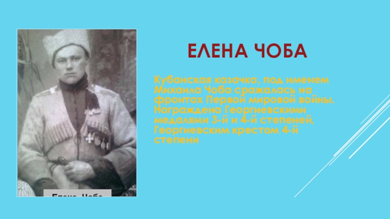 Кубанская казачка, под именем Михаила Чоба сражалась на фронтах