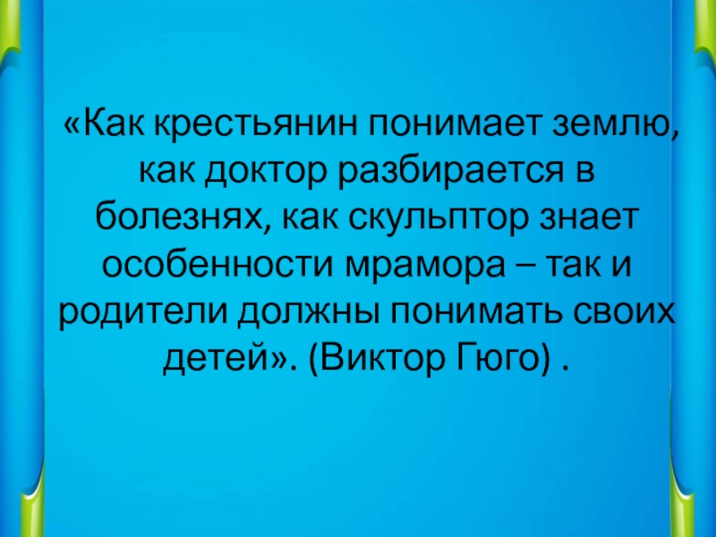 знает особенности мрамора – так и родители должны понимать своих детей». (Виктор Гюго) .