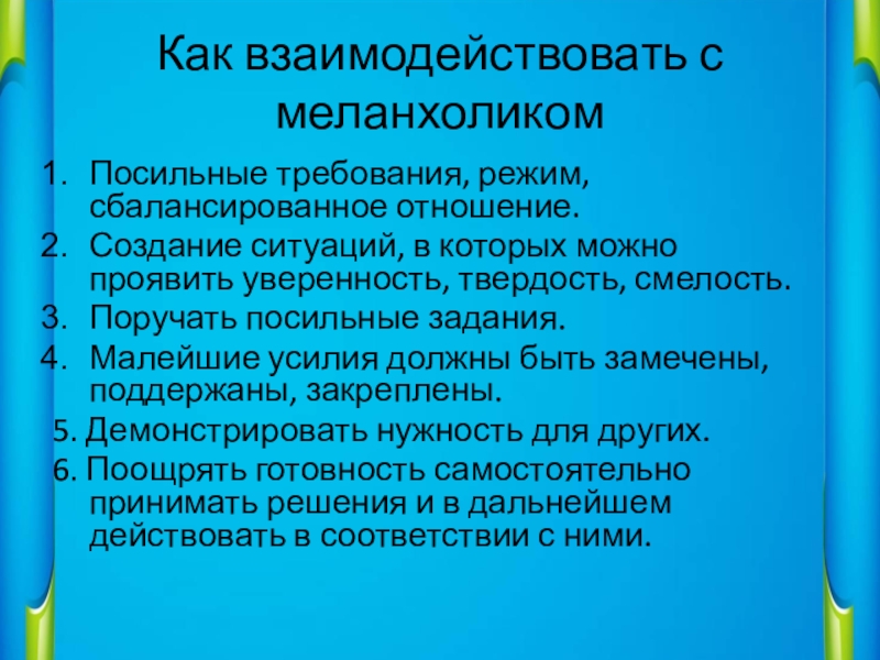 Слайд 11Как взаимодействовать с меланхоликом