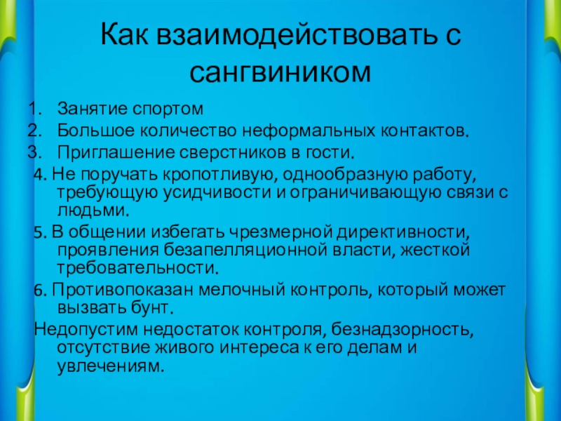 Слайд 12Как взаимодействовать с сангвиником