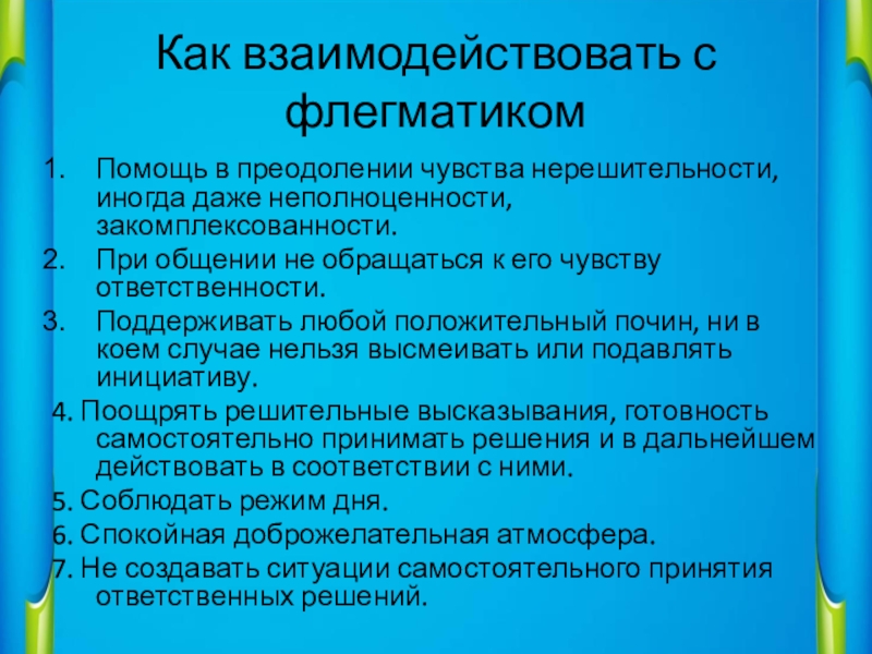 Слайд 13Как взаимодействовать с флегматиком