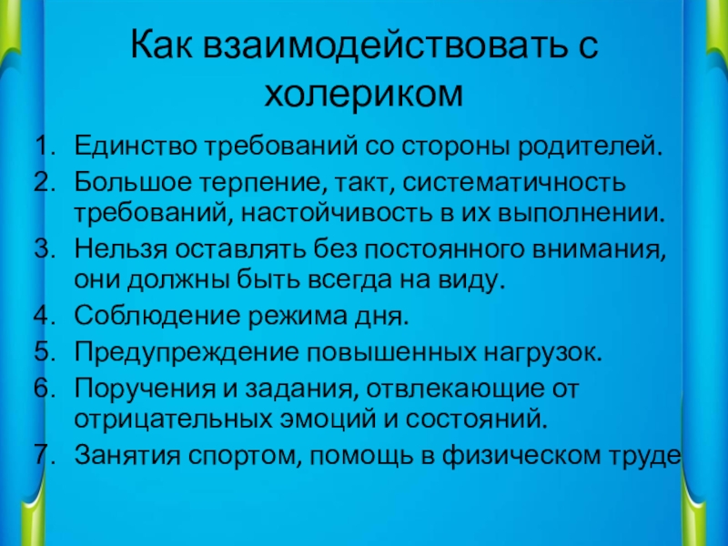 Слайд 10Как взаимодействовать с холериком