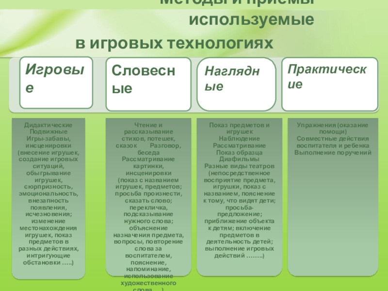 Понятие «игровые педагогические технологии» включает достаточно обширную группу методов и