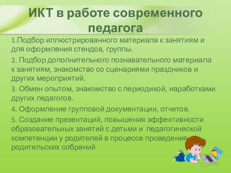 Слайд 12ИКТ в работе современного педагога
