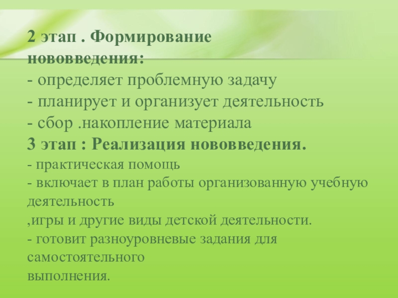 3 этап : Реализация нововведения.
