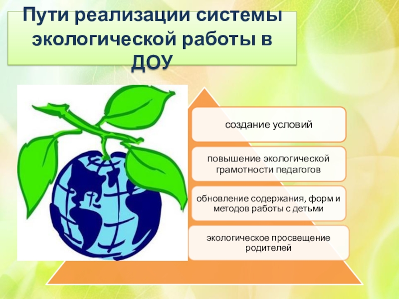 Слайд 6Пути реализации системы экологической работы в ДОУ