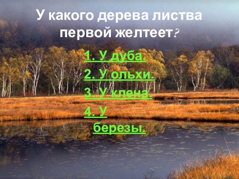 Слайд 80У какого дерева листва первой желтеет?