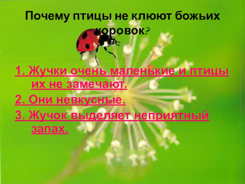 Слайд 60Почему птицы не клюют божьих коровок?