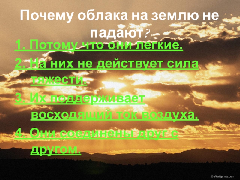 Слайд 72Почему облака на землю не падают?