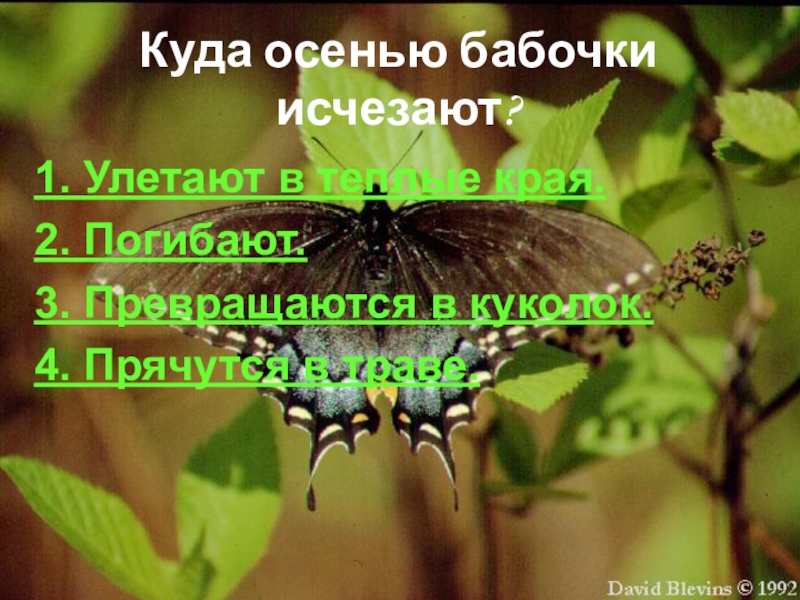 Слайд 76Куда осенью бабочки исчезают?