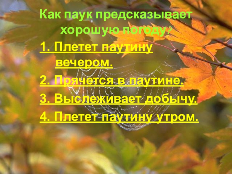 Слайд 64Как паук предсказывает хорошую погоду?