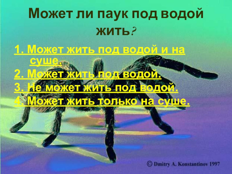 Слайд 68Может ли паук под водой жить?