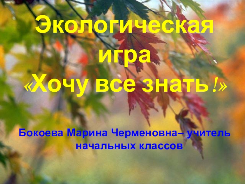 Экологическая игра «Хочу все знать!»Бокоева Марина Черменовна– учитель начальных классов