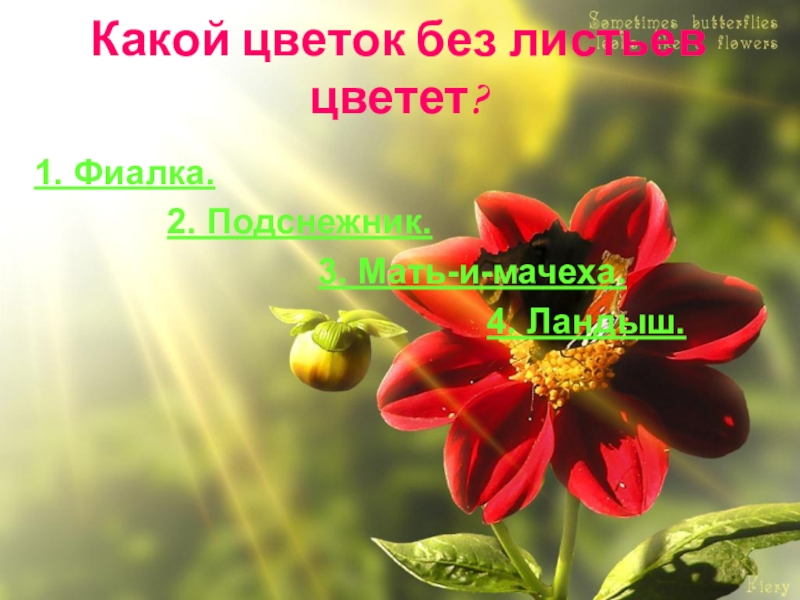 Слайд 24Какой цветок без листьев цветет?