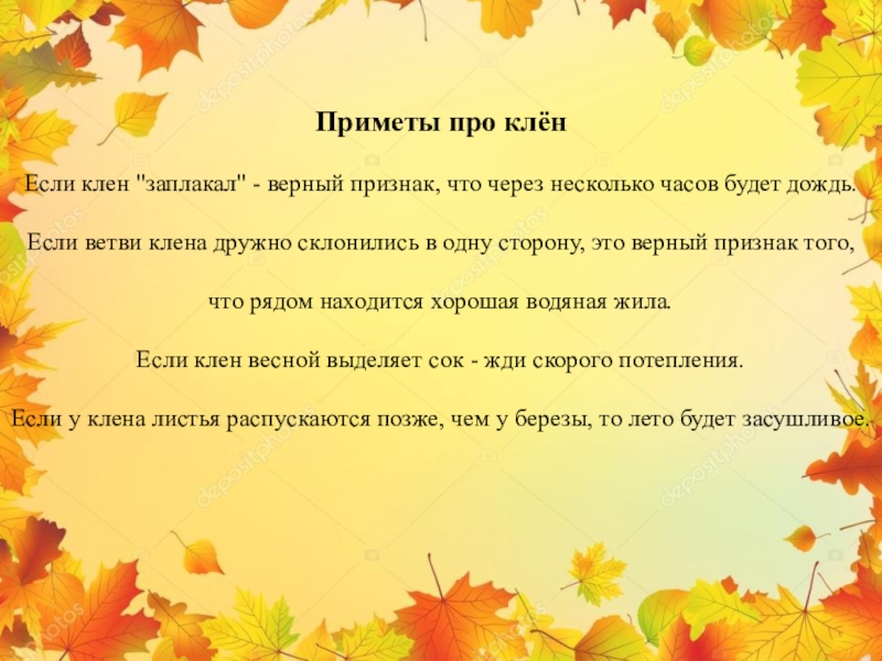 Слайд 18Приметы про клён