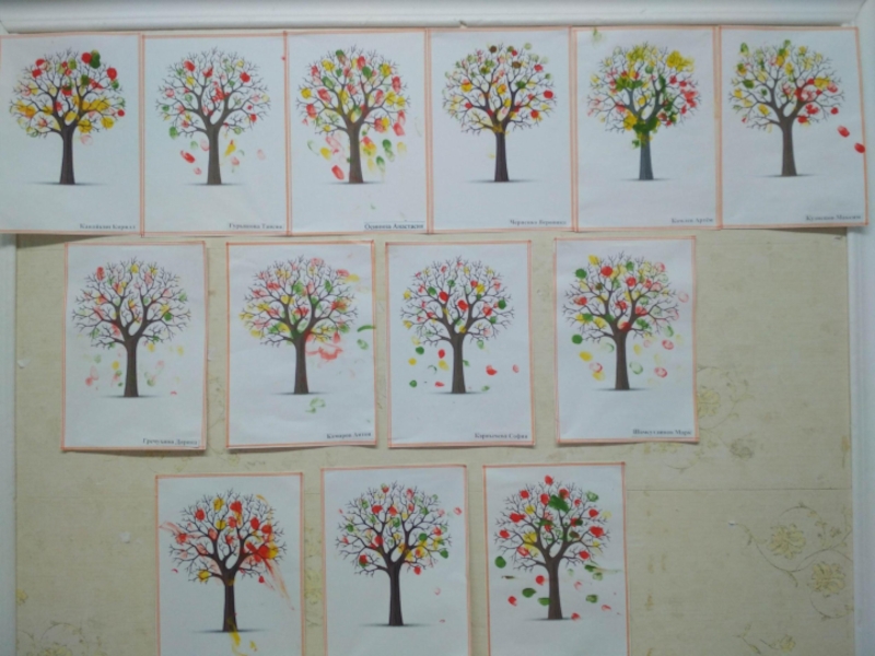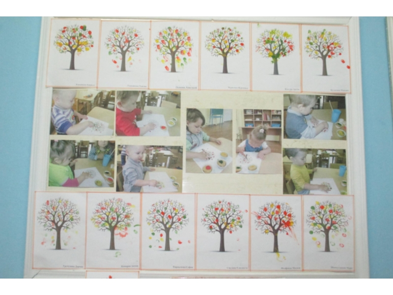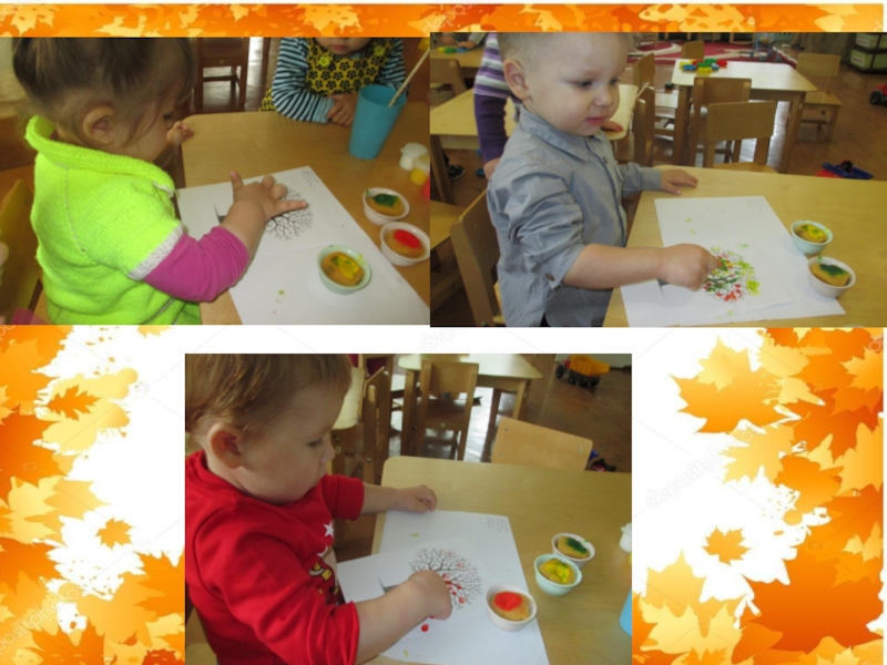 Задачи: Обучать умению рисовать листья, примакивая пальчик к листу бумаги;