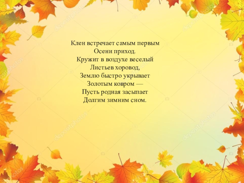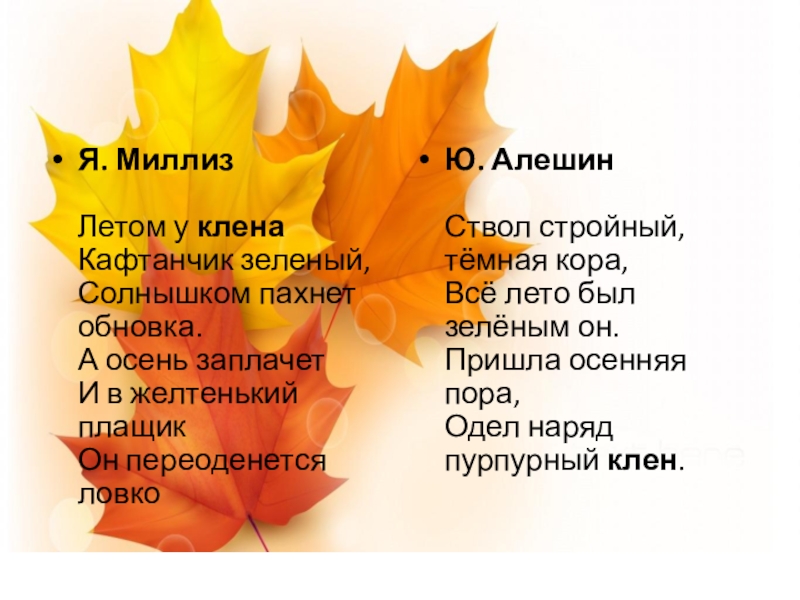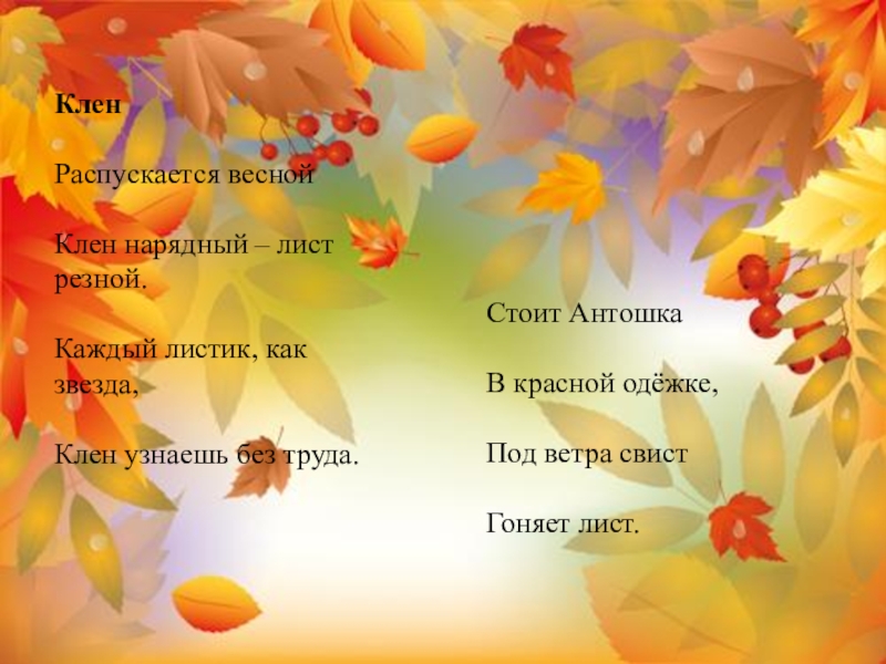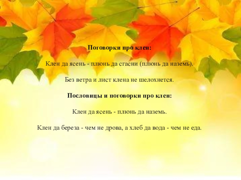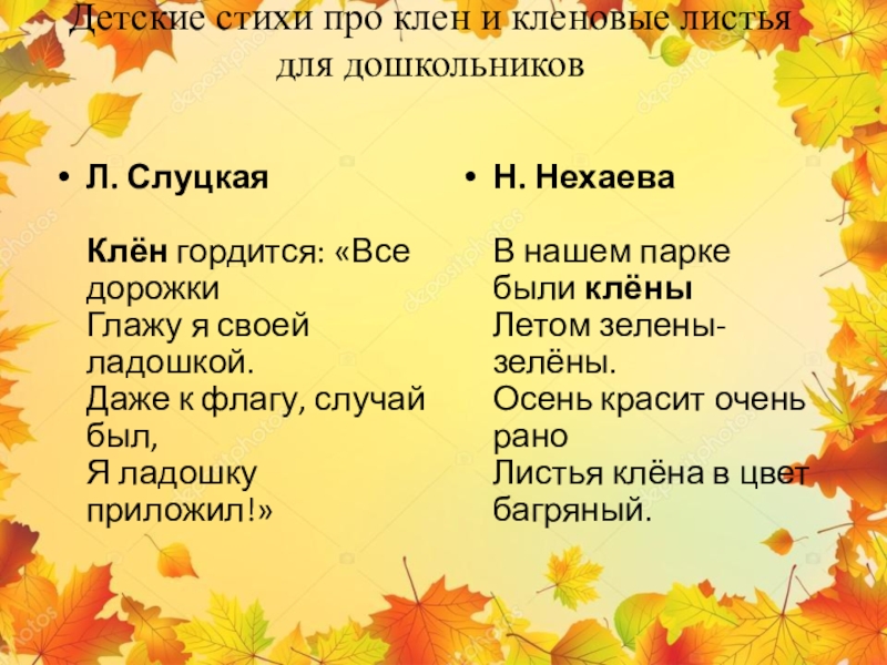 Слайд 19Детские стихи про клен и кленовые листья для дошкольников