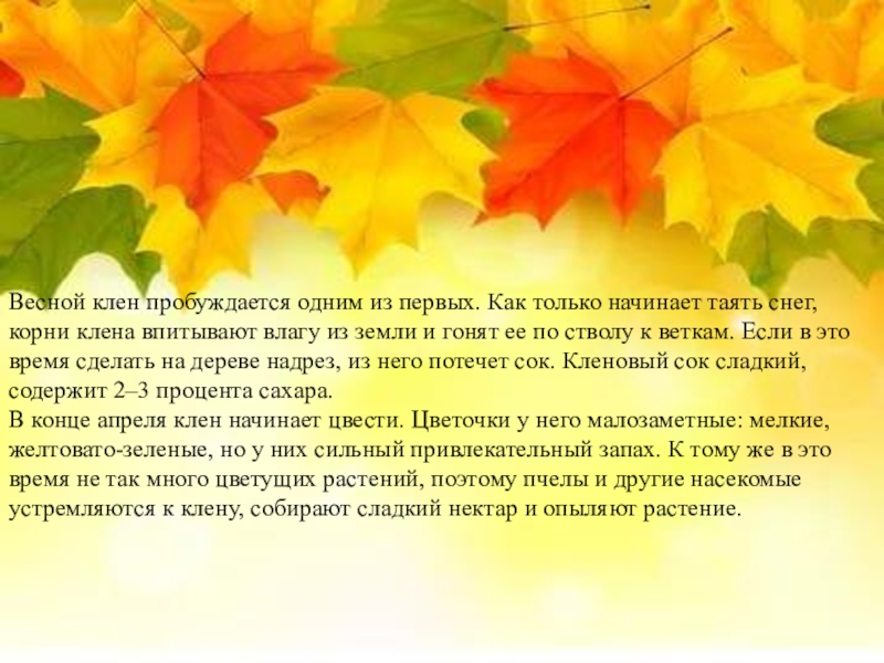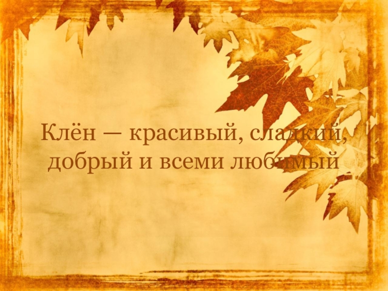 Слайд 2Клён — красивый, сладкий, добрый и всеми любимый