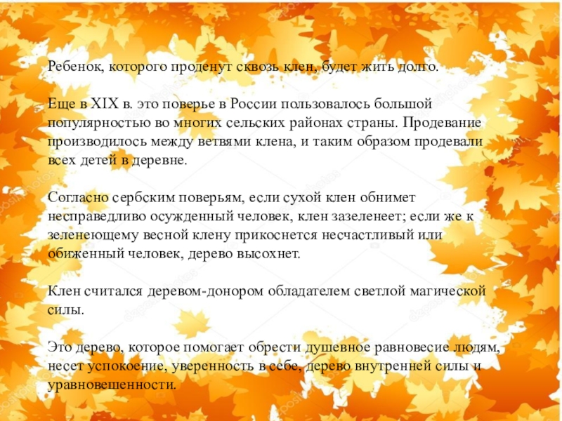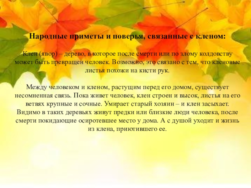 Слайд 11Народная молва о клене